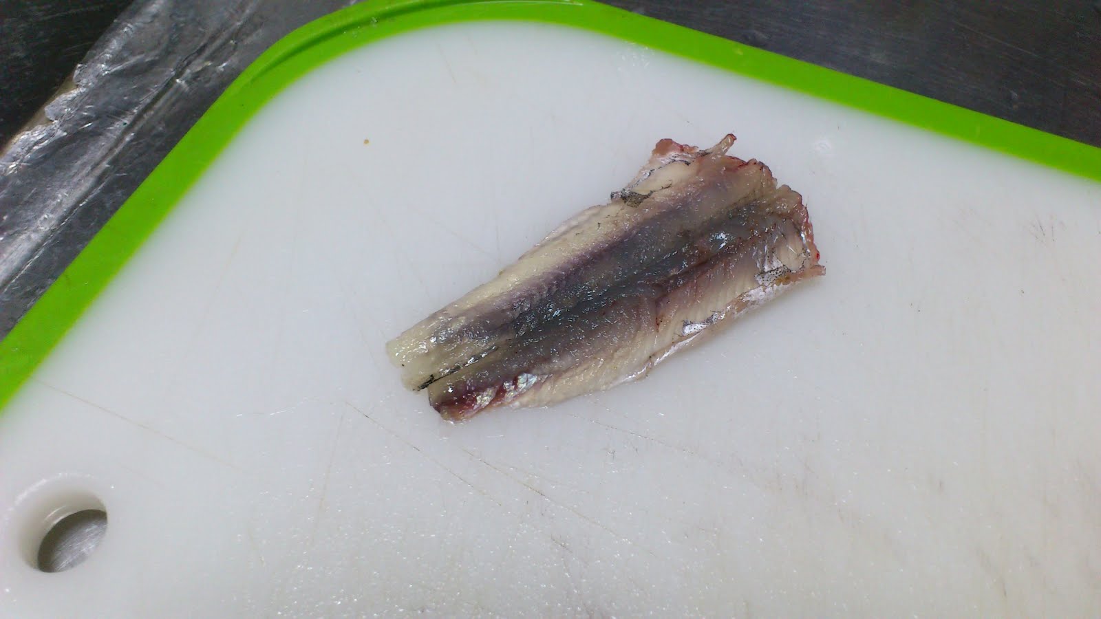 先刮去鱗片、切掉頭。然後剖開肚子挖掉內臟。